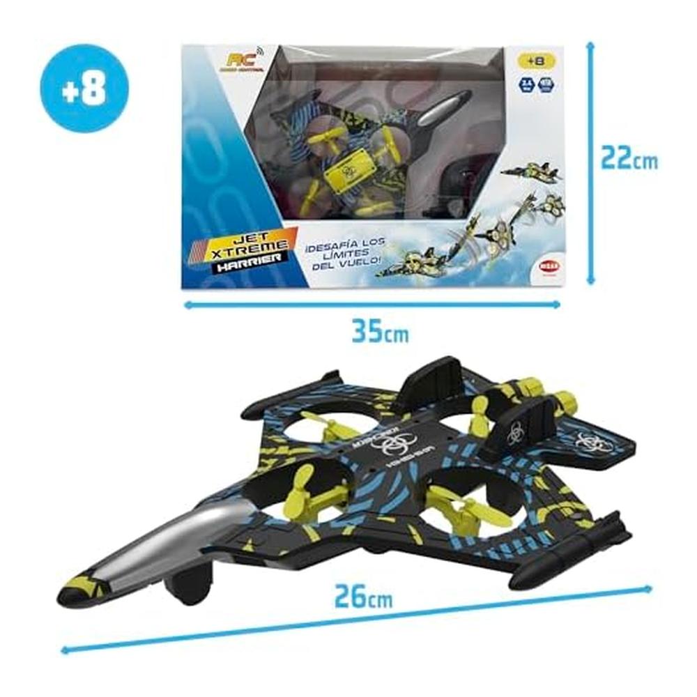 El Jet Xtreme Harrier 65430001 es un avión radiocontrol de cuatro canales y frecuencia 2.4 GHz, diseñado para ofrecer una experiencia de vuelo emocionante tanto para niños a partir de 8 años como para principiantes en el mundo del aeromodelismo.