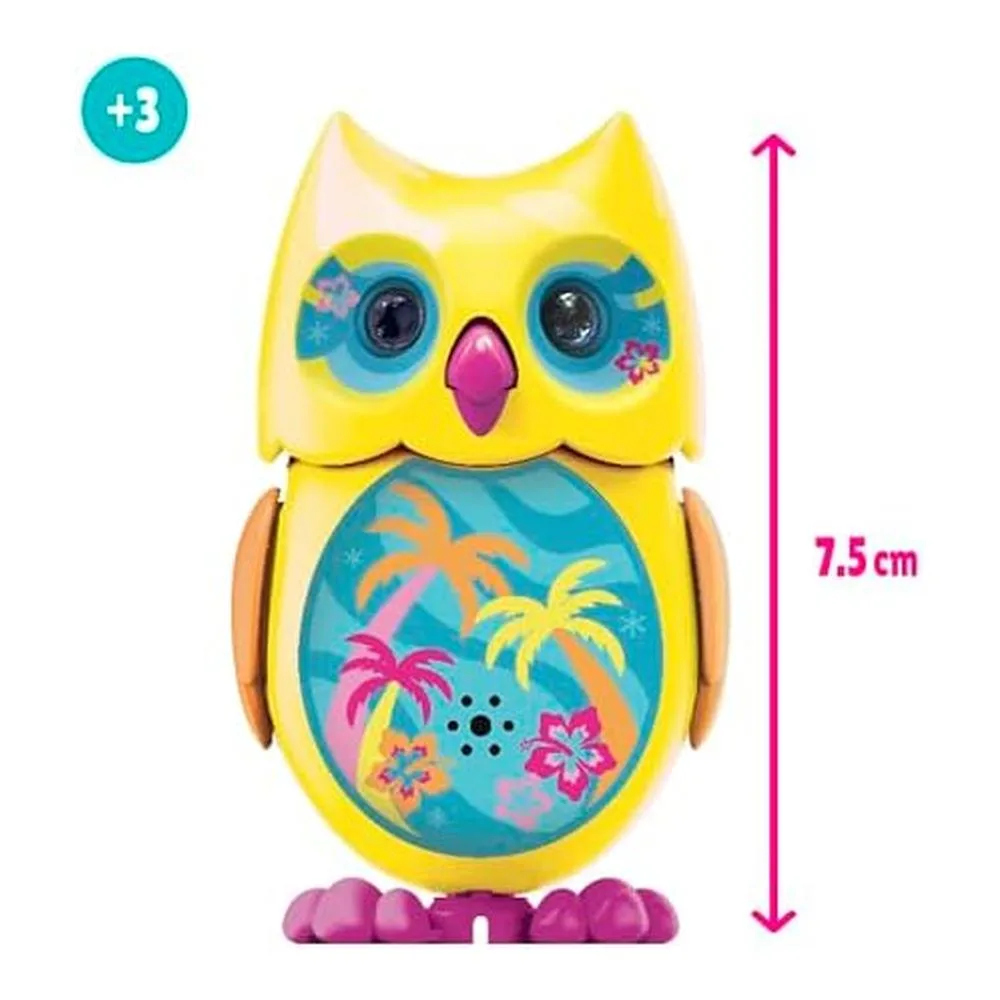 Este búho reacciona al sonido, ya sea una caricia, una palmada o un susurro, activando un repertorio de más de 50 sonidos y pequeños cantos, que incluyen gorjeos, risitas y melodías tiernas. La interacción sensorial provoca una respuesta inmediata que encanta y sorprende.