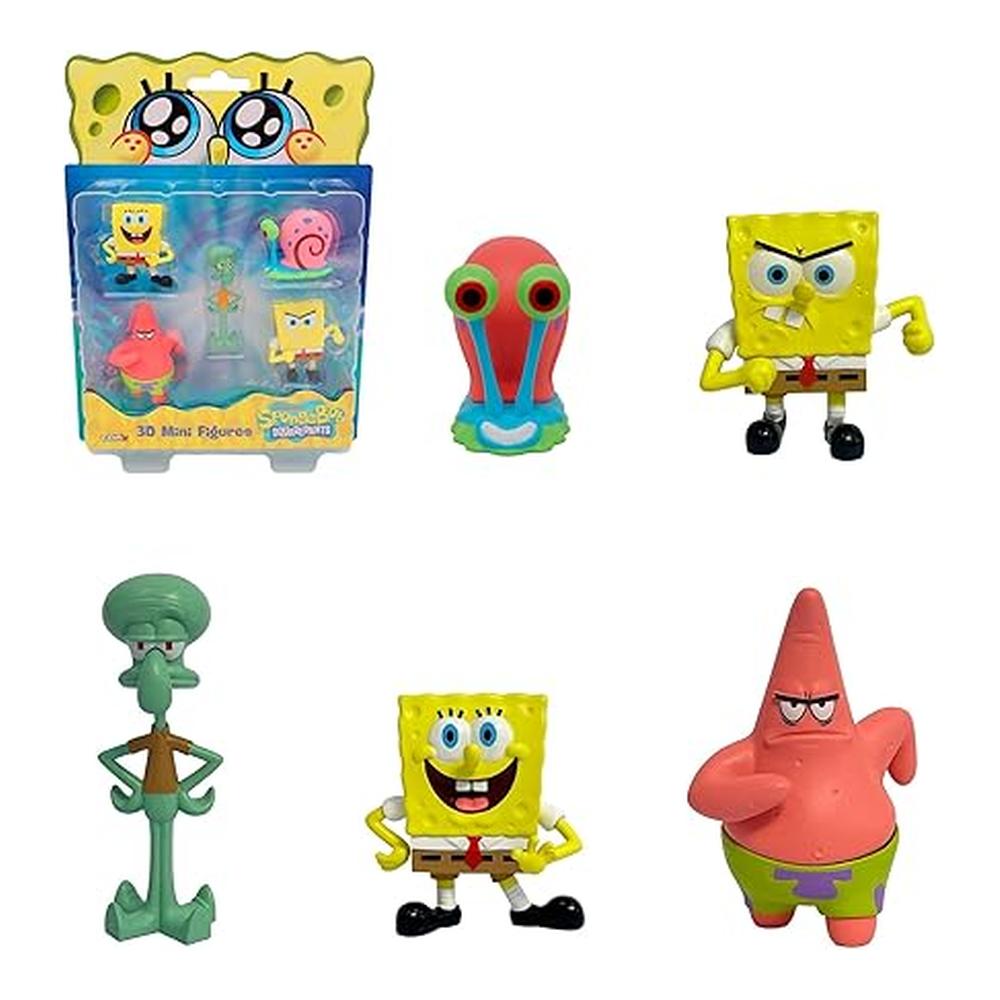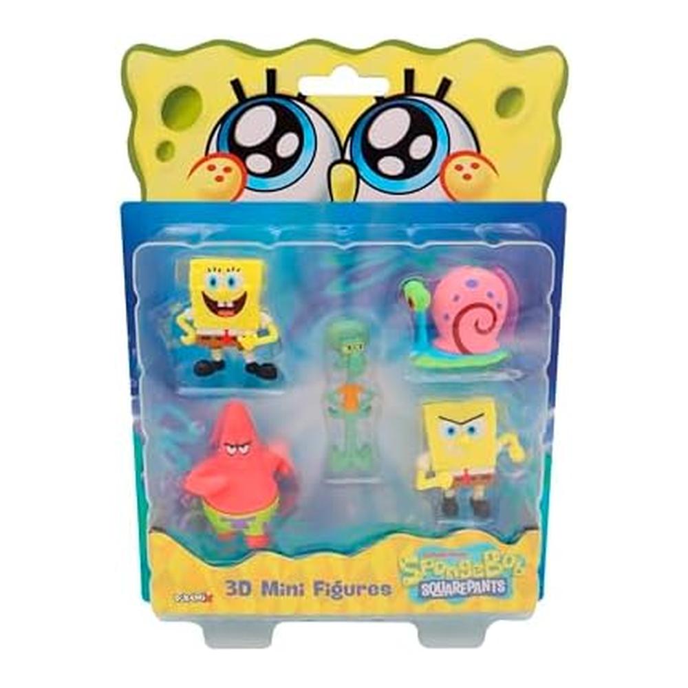 Bizak Bob Esponja Pack 5 Figuras 5 cm Gary, Bob Esponja, Calamardo, Bob Esponja sonriendo y Patricio 64393002-1