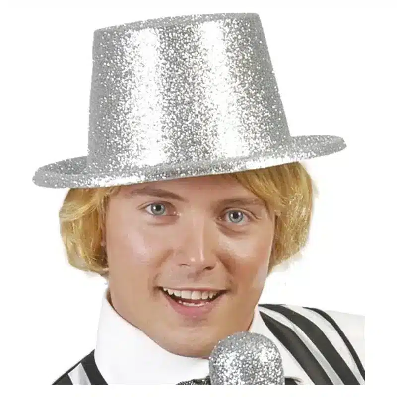 Haz tu pedido hoy del producto Sombrero de Copa Alto con Purpurina Plateada 13453 GUIRCA con una edad recomendada de Más de 10 años y unas dimensiones de 26x23x13. Siendo su referencia de proveedor 13453 GUIRCA , y un código de barras 8434077134535