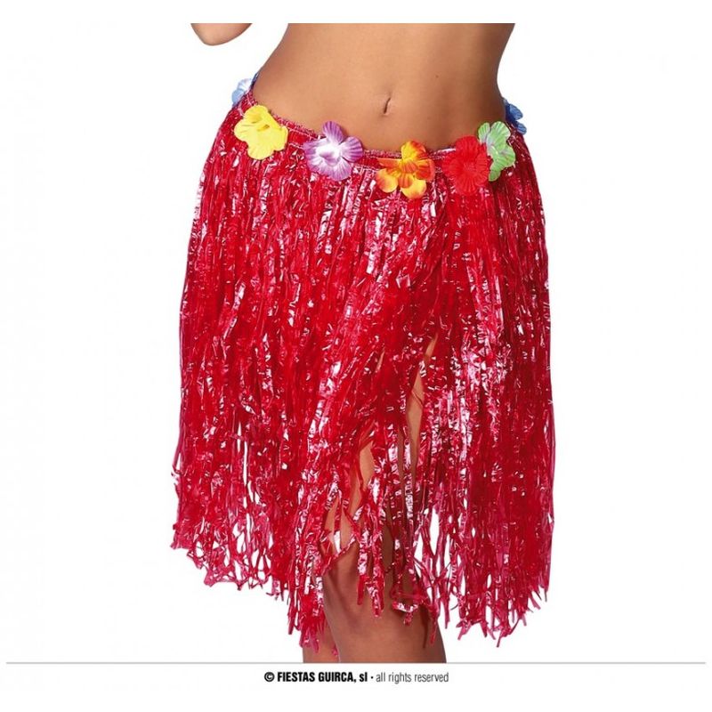Falda hawaiana con flores roja de 55 cm para disfraz de carnaval 17635