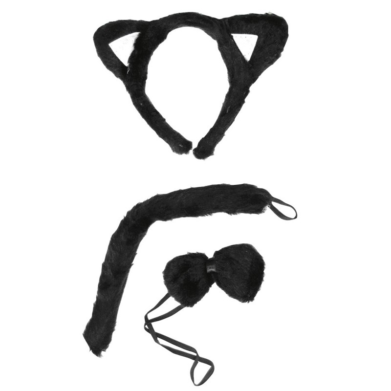 Set de 3 Complementos Gato Negro para Disfraz Adulto con cola y orejas