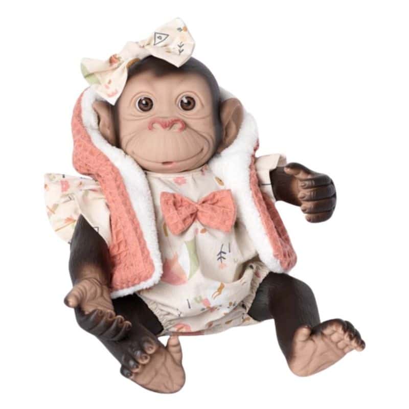 Mono reborn pelele beig y chaleco 35 cm vinilo 3341 ROSA TOYS