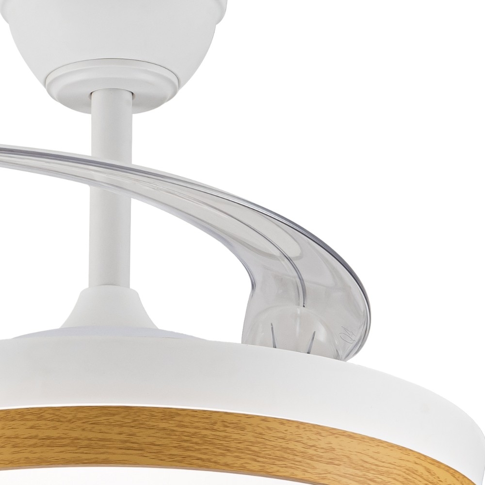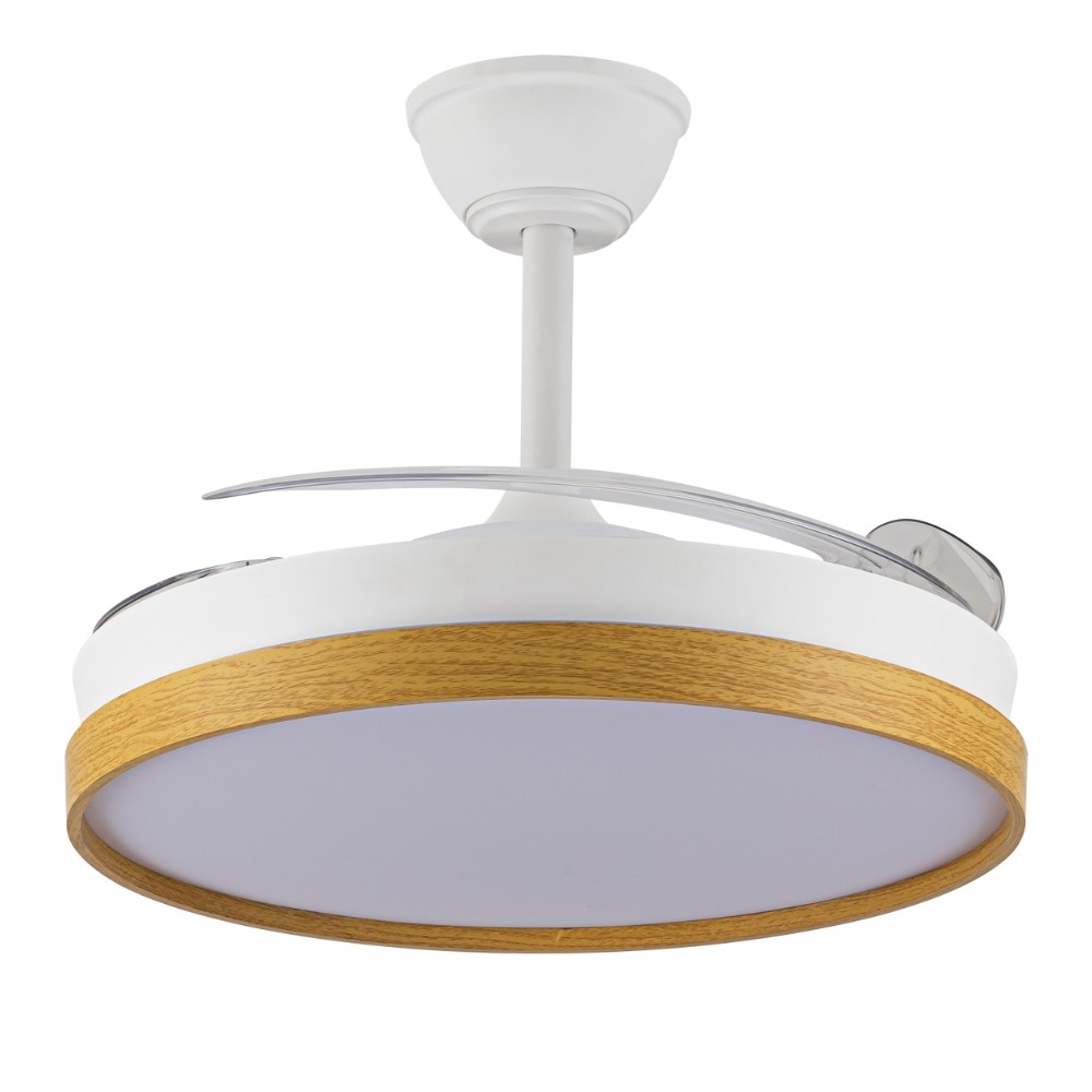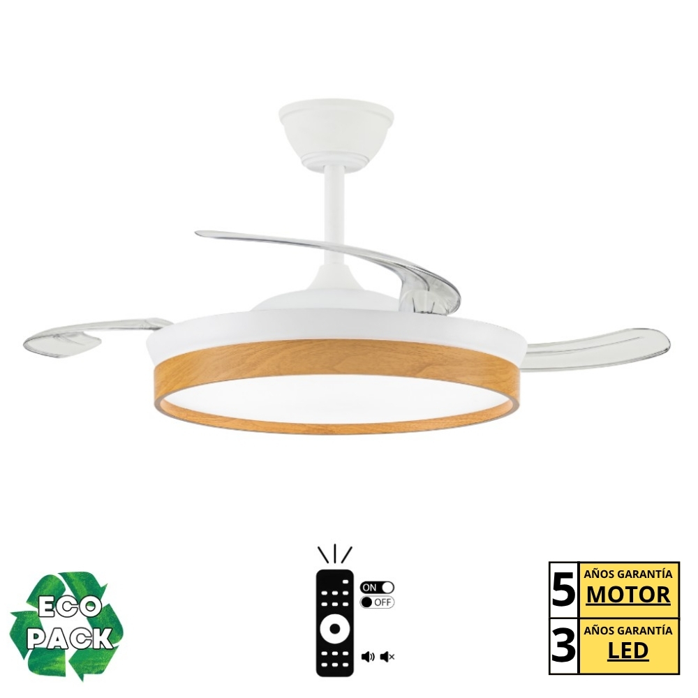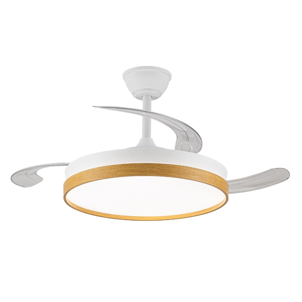 Ventilador de techo Fragata S Blanco madera clara con luz LED, motor DC silencioso y temporizador