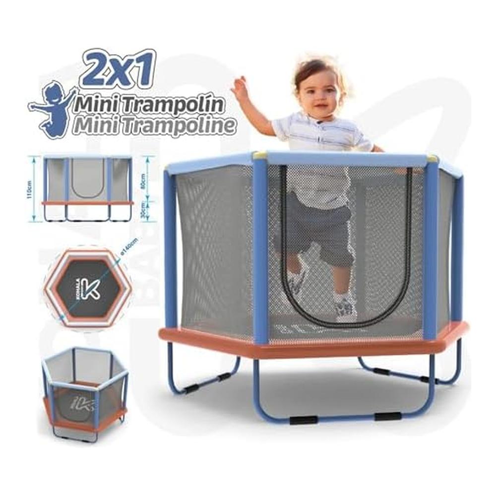Con un diámetro de 140 cm, este modelo ofrece el espacio perfecto para saltar con comodidad, favoreciendo el equilibrio, la coordinación motriz y la actividad física diaria. Está equipada con una red de seguridad perimetral que rodea toda la estructura, evitando caídas accidentales y permitiendo a los padres estar tranquilos mientras los niños se divierten.