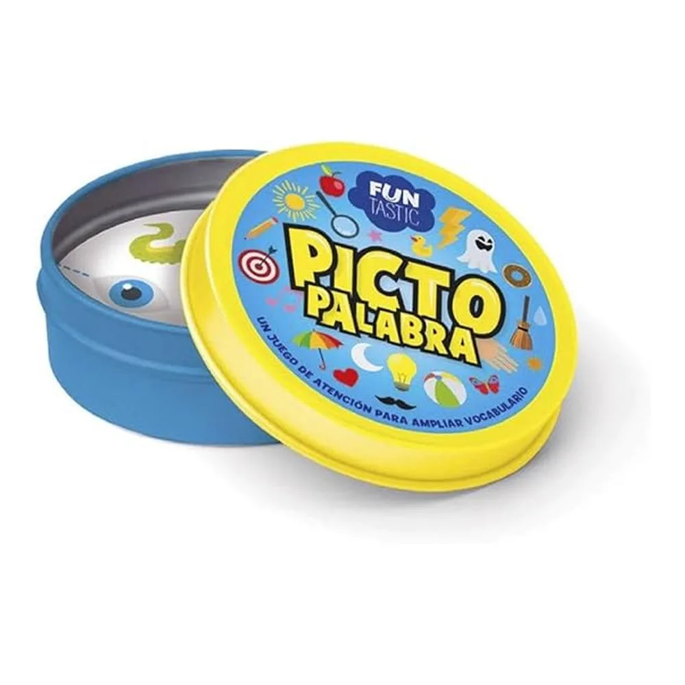 El juego se presenta en una lata compacta y fácil de transportar, perfecta para jugar en múltiples entornos: en casa, en el aula o durante viajes. Su formato portátil permite guardarlo y llevarlo con comodidad sin perder piezas ni organización. Picto Palabra está pensado para que los niños asocien imágenes (pictogramas) con palabras escritas, facilitando así la comprensión lectora, la memoria visual y la construcción de vocabulario.