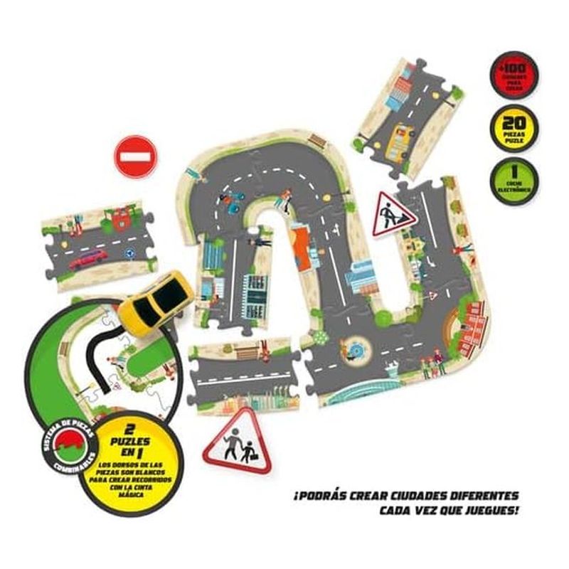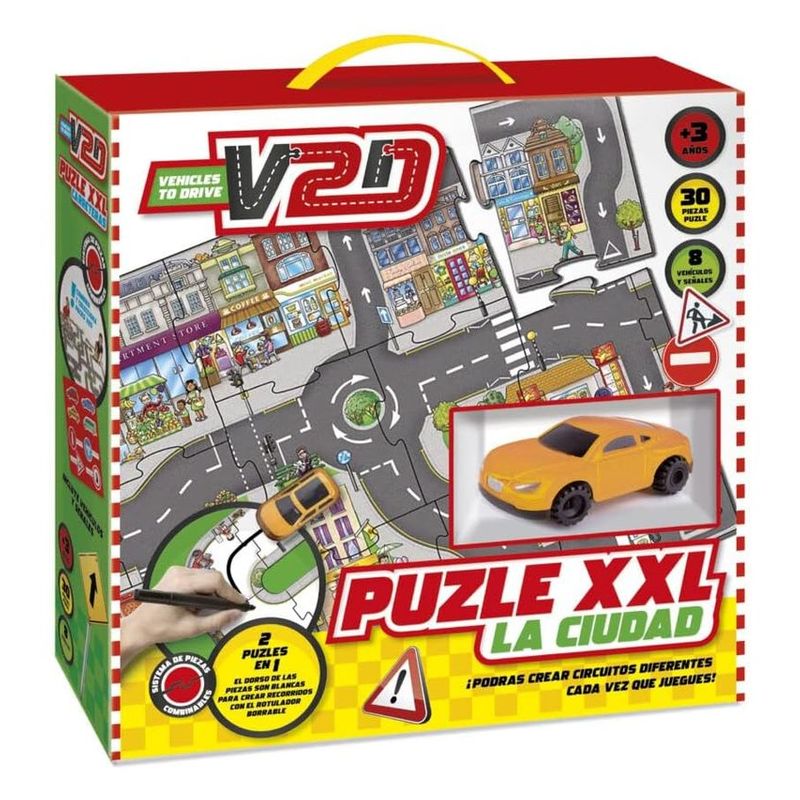 Puzzle ciudad XXL con vehículo 2 en 1 con rotulador de tinta mágica V2D003