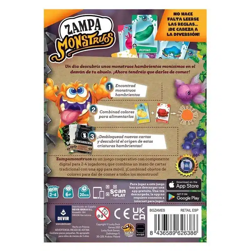 Haz tu pedido hoy del producto Juego de mesa Zampa Monstruos Andreas Wilde BGZAMPSP DEVIR con una edad recomendada de Más de 6 años y unas dimensiones de 30x30x7. Siendo su referencia de proveedor BGZAMPSP DEVIR, y un código de barras 8436589626386