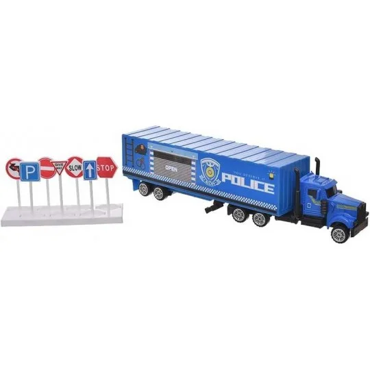 Camión azul de policía para transporte de vehículos con 14p 23-911
