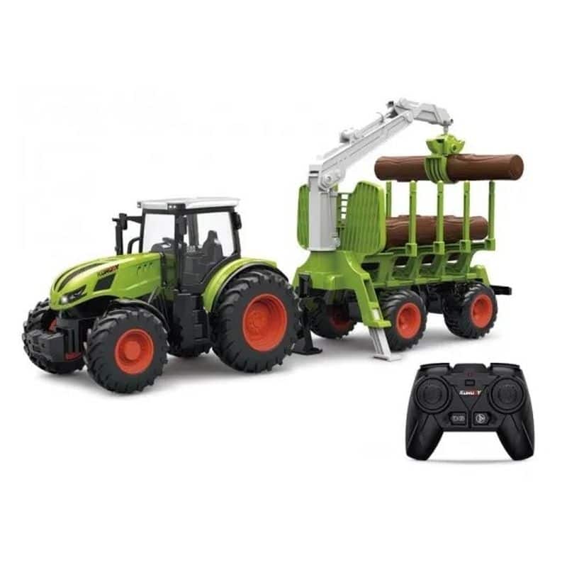 Tractor verde porta troncos con mando radio control de 2,4 GHz