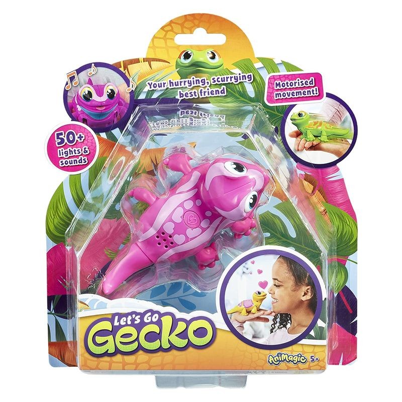 Muñeco camaleón Let’s Go Gecko de luz rosa con sonido y movimiento