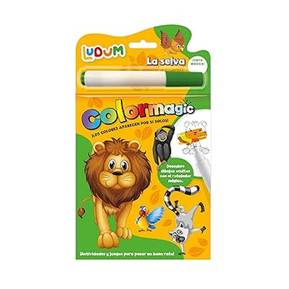 El Colormagic La Selva es un bloc de diversión ecológica donde, al mojar los dibujos con agua, aparecen colores ocultos formando escenas de animales, plantas y paisajes selváticos. Este efecto “mágico” no requiere pinturas ni suciedad, lo que permite que los pequeños artistas exploren sin líos y con resultados sorprendentes.